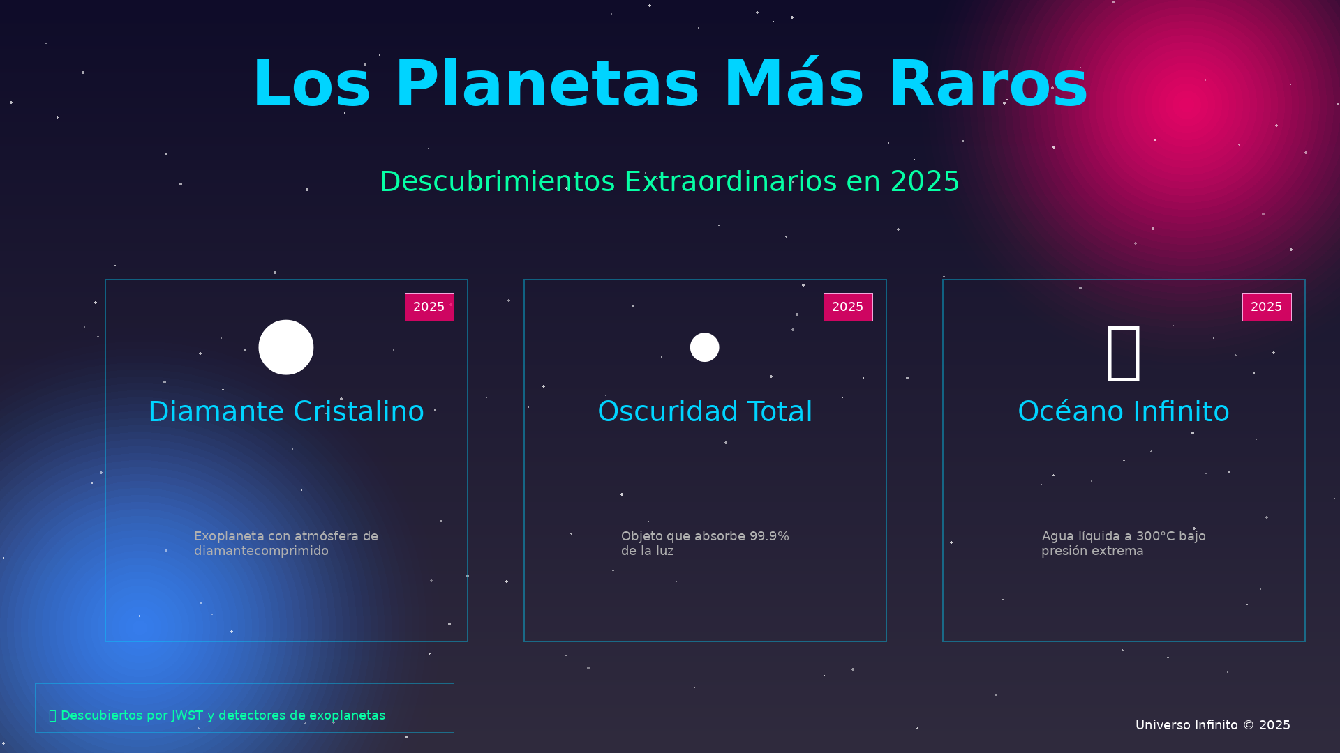 El universo es más extraño de lo que imaginábamos. Los descubrimientos de exoplanetas en 2025 han revolucionado nuestra comprensión del cosmos. Mundos que desafían las leyes de la física conocida orbitan estrellas…